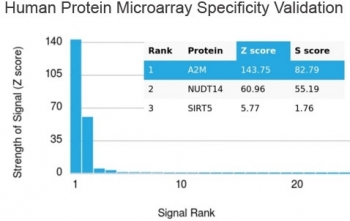 A portion of amino acids 604-748 from the human protein was used as the immunogen for the A2M antibody.