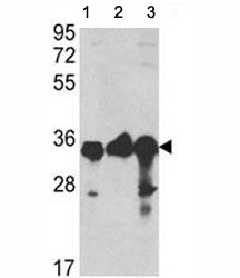 A portion of amino acids 62-91 from the human protein was used as the immunogen for this anti-GAPDH antibody.