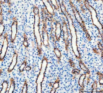 An amino acid sequence from the C-terminus of human Aquaporin 3 (EENVKLAHVKHKEQI) was used as the immunogen for this AQP3 antibody.