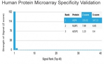 A portion of amino acids 200-323 from the human protein was used as the immunogen for the Aquaporin 4 antibody.