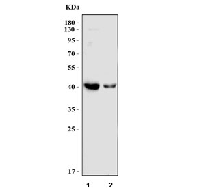 An amino acid sequence from the C-terminus of human BCAT1 (KLASRILSKLTDIQYGR) was used as the immunogen for this BCAT1 antibody.