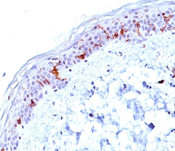 The concentration stated for each application is a general starting point. Variations in protocols, secondaries and substrates may require the CD1a antibody to be titered up or down for optimal performance.