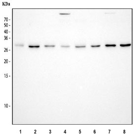 An amino acid sequence from the C-terminus of human FADD (ADLVQEVQQARDLQNR) was used as the immunogen for this FADD antibody.