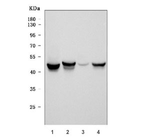 The stated application concentrations are suggested starting points. Titration of the GFAP antibody may be required due to differences in protocols and secondary/substrate sensitivity.