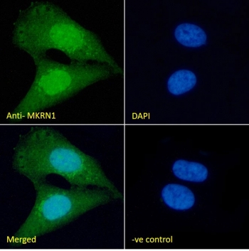 Amino acids RYEHSKPLKQEEAT were used as the immunogen for this MKRN1 antibody.