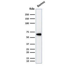 Oct-2 is a transcription factor of the POU homeo-domain family that binds to the Ig gene octamer sites, regulating B-cell-specific genes. Oct-2 expression can be used as a marker of B-cell lineage and differentiation. Germinal center B-cells, mantle B-cells, monocytoid B-cells, and plasma cells show high level expression of Oct-2. Additionally, mantle cell lymphoma, follicular lymphoma, marginal zone lymphoma, plasmacytoma, Burkitt lymphoma, diffuse large cell lymphoma, diffuse large B-cell lymphoma, Hodgkin lymphoma display increased expression of Oct-2. Several studies of Oct-2 expression have shown a low level expression in pre-B, T-cell, myelomonocytic, and epithelial cell lines, whereas all mature B-cell lines have high levels of expression. In spite of scanty evidence for Oct-2 expression in T cells, it is believed that this factor participates in transcriptional regulation during T-cell activation.