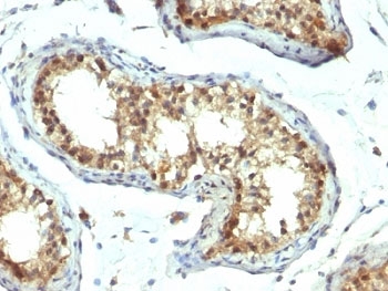 1. The prediluted format is supplied in a dropper bottle and is optimized for use in IHC. After epitope retrieval step (if required), drip mAb solution onto the tissue section and incubate at RT for 30 min.