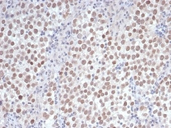OCT4 is a member of the POU family of transcription factors, involved in the regulation of pluripotency during normal development and is detectable in embryonic stem and germ cells. OCT4 is a key regulator of self-renewal in embryonic stem cells; its expression is potentially correlated with tumorigenesis and can affect tumor recurrence or resistance to therapies. OCT4 is expressed in undifferentiated pluripotent cells, germ cells in ovary and testes. OCT4 Ab is useful in the identification of primary as well as metastatic germ cell tumors.