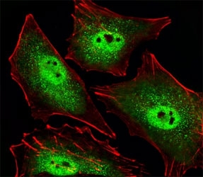 A portion of amino acids 566-601 of the mouse protein was used as the immunogen for the SIRT1 antibody.