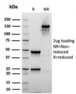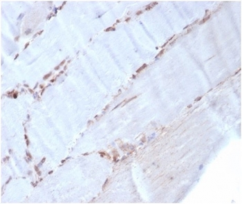 Actin is a major component of the cytoskeleton and is present in most cell types. It is highly specific to actin from smooth muscles. This MAb does not stain cardiac or skeletal muscle; however, it does stain myofibroblasts and myoepithelial cells. This antibody could be used together with anti-muscle specific actin and myogenin in making a diagnosis of smooth muscle and skeletal muscle tumors. In most cases of rhabdomyosarcoma, this antibody yields negative results whereas anti-muscle specific actin and myogenin are positive. Leiomyosarcomas are positive only with anti-muscle specific actin and anti-smooth muscle actin and are negative with anti-myogenin.