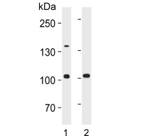 A portion of amino acids 1104-1132 from the human protein were used as the immunogen for the TERT antibody.