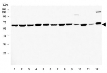 E. coli-derived recombinant human protein (amino acids D121-R400) was used as the immunogen for the TFG antibody.