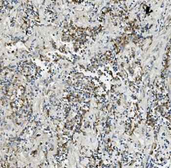 IHC staining of FFPE human lung cancer with TXN2 antibody. HIER: boil tissue sections in pH8 EDTA for 20 min and allow to cool before testing.
