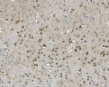 IHC staining of FFPE rat brain with TXN2 antibody. HIER: boil tissue sections in pH8 EDTA for 20 min and allow to cool before testing.