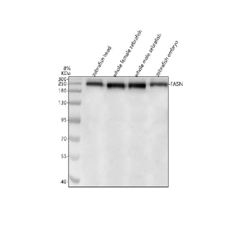 E. coli-derived zebrafish Fasn recombinant protein (amino acids Q508-G2511) was used as the immunogen for the Zebrafish Fasn antibody.