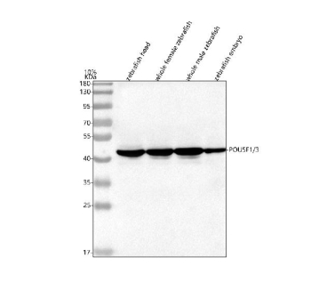 After reconstitution, the Zebrafish Pou5f1 antibody can be stored for up to one month at 4oC. For long-term, aliquot and store at -20oC. Avoid repeated freezing and thawing.